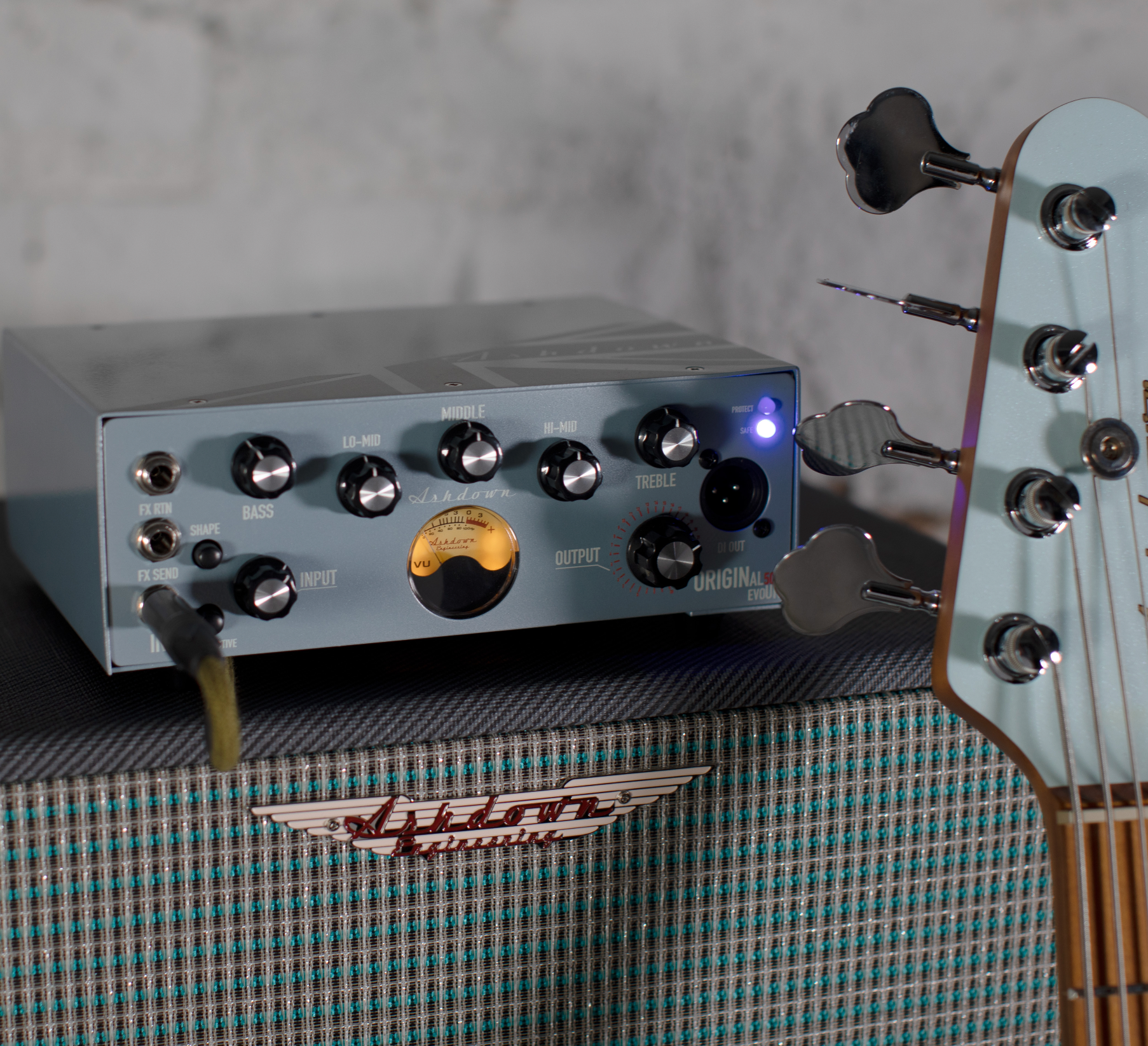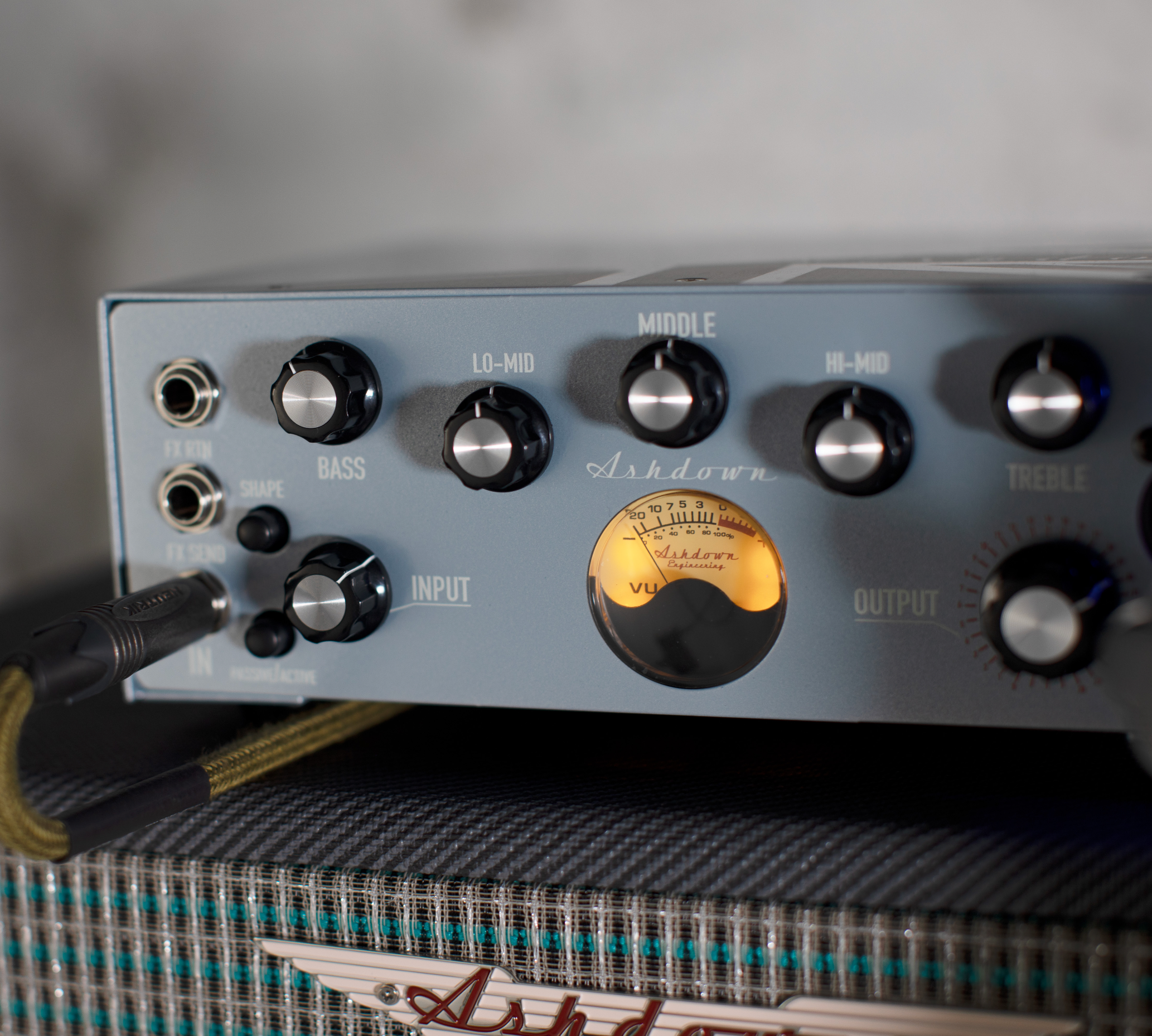 The Ashdown UK-OBM-300 is a UK-built, ultra-compact 300-watt bass head finished in Ice Blue. Lightweight and punchy, it features a responsive 5-band EQ, classic Pre-Shape circuit, DI output, FX Loop, and auto-voltage for worldwide use. A clean, dependable amp designed for bassists who want great tone in an extremely portable format.