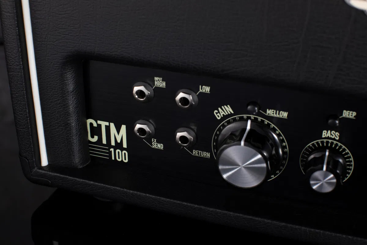 Fabriqué à la main en contreplaqué de bouleau robuste de qualité marine , le CTM-100 délivre 100 watts de puissance à lampes via un préampli à cinq lampes et deux KT88, idéal pour les petits et moyens concerts. Offrant une large palette sonore – de la douce chaleur des années 60 au grondement rauque des années 70, en passant par le punch moderne et puissant – il est équipé de commutateurs Deep, Mid Shift et Bright, ainsi que de commandes de tonalité passives hautement interactives. Avec un bias réglable par l'utilisateur via un VU-mètre double fonction , des lampes à fusibles individuels, une DI à lampes et une boucle d'effets à lampes en façade , le CTM-100 allie caractère vintage, durabilité moderne et facilité d'entretien.